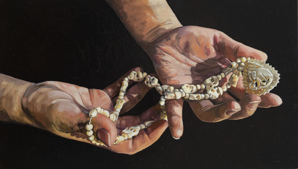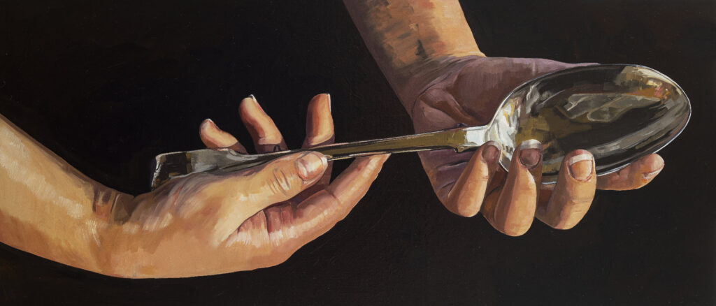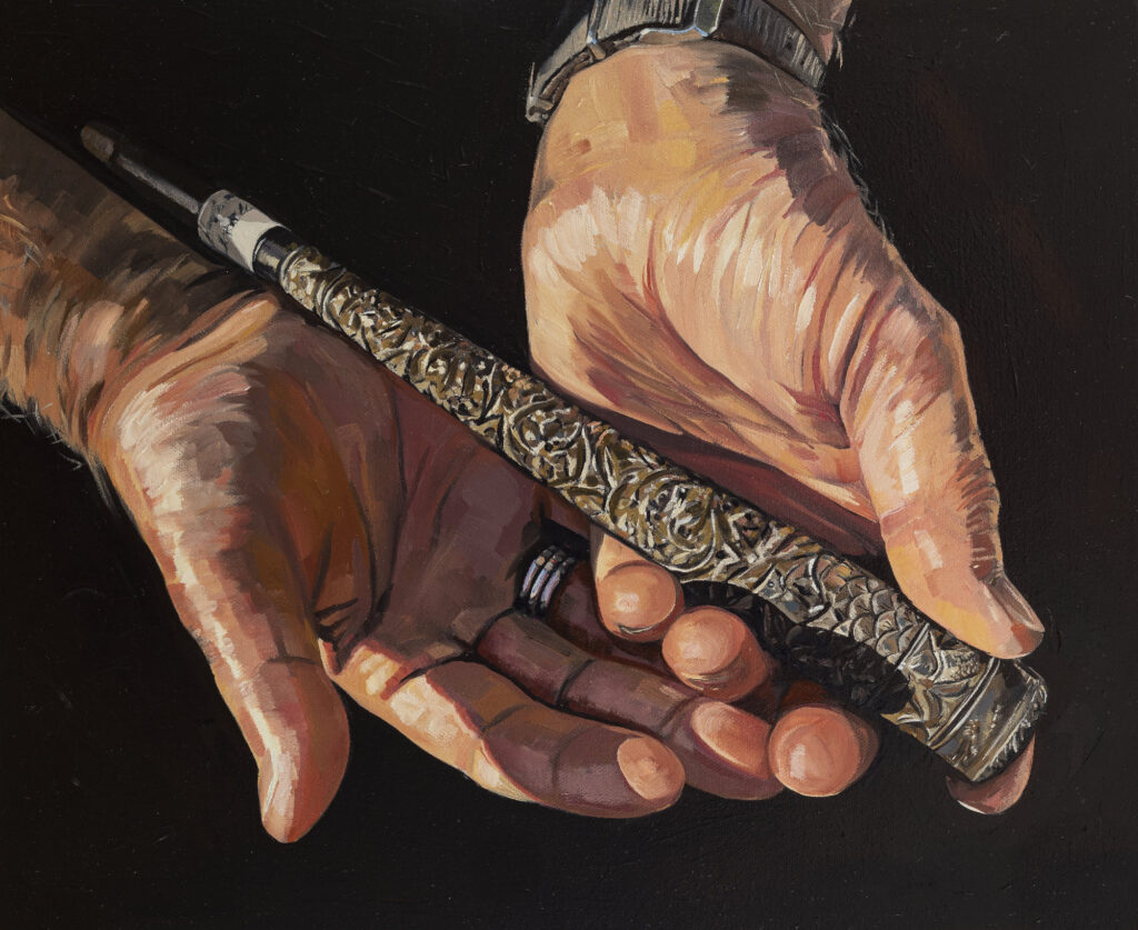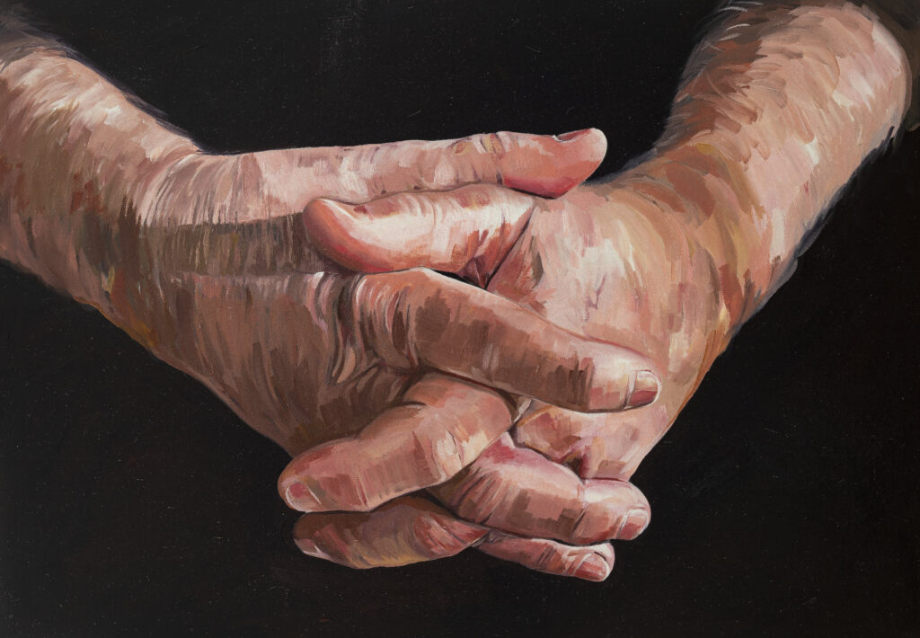 It does not matter that we do not know whose hands we see in these paintings. They are ours; the hands of those we love; the hands of strangers—human hands. On the wall, they capture ever-fleeting moments of life-holding and life-making. They invite our reflection on action and rest, on agency and possibility.